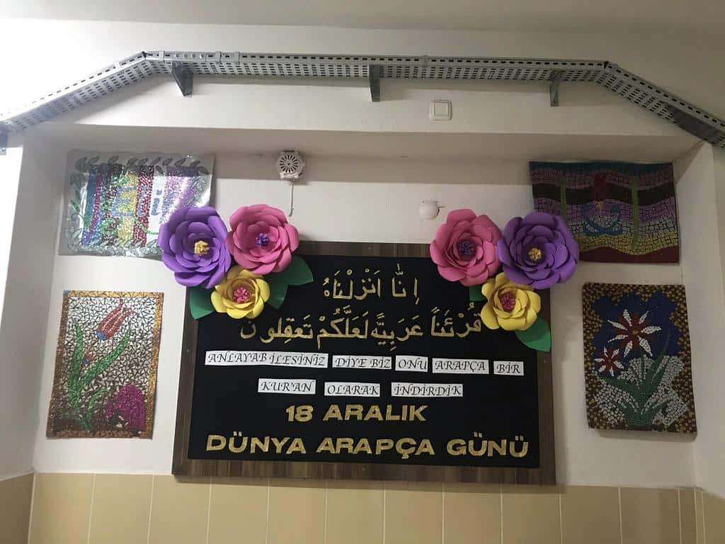 18 ARALIK DÜNYA عربي GÜNÜ ETKİNLİKLERİ 26 Ülkenin resmî dili olup dünyanın en yaygın dilleri arasında ön sıralarda bulunan Arapça aynı zamanda 1 milyarı aşanmüslümanın ibadet dili, Kuran dilidir. 18 Aralık günü tüm dünyada Arapça Günü olarak kutlanmaktadır. Okulumuzda öğretimi yapılan 2 yabancı dilden biri olan Arapça'yı Dünya Arapça Günü vesilesiyle hafta boyunca çeşitli etkinliklerle anlamaya ve anlatmaya çalıştık. Arap Dili ve Edebiyatı Öğretmenimiz Zehra Gürbüz ve öğrencilerimiz okulumuzu Arapça afiş ve görsellerle donattılar. Hafta boyunca yapılan etkinlikler bugün konferans salonumuzda yapılan Arapça Bilgi Yarışması ile taçlandı. Öğrencilerimizin yoğun ilgi gösterdikleri programımız kazanan öğrencilere verilen sertifika ve ödüllerle tamamlandı. Dün itibariyle tamamlanan Dünya Futbol Şampiyonasının yine bir Arap ülkesi olan Katar'da gerçekleşmiş olması öğrencilerimizin Arapçaya olan ilgisini bir kat daha artırmıştır. Tarihi geçmişimiz ve bulunduğumuz coğrafya gereği Arap dünyasıyla her daim yoğun işbirliği içinde olmamız kaçınılmaz bir gerçekliktir. Okulumuzda yapılan etkinlikler sonucunda öğrencilerimizde oluşan Arapça Dili ilgi ve farkındalığı olağan üstü şekilde artmıştır. Öğretmenimiz Zehra Gürbüz ve emeği geçenleri tebrik ederiz.