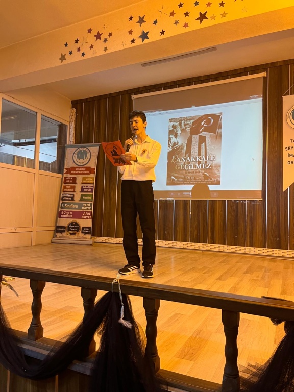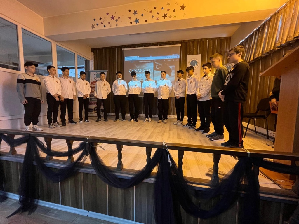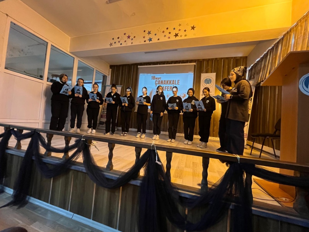 Çanakkale şehitleri ruhuna aşır okundu. Günün anlam ve önemini vurgulayan konuşmaların ardından öğrencilerimiz, Çanakkale Destanını anlatan şiirler okudu. Tarihin en büyük kahramanlık destanlarından biri olan Çanakkale Zaferi, öğrencilerimizin hazırladığı koro ve sunumlarla bir kez daha hatırlandı.