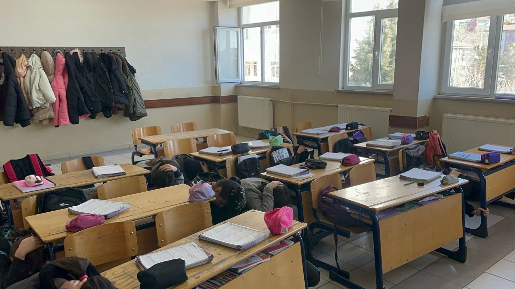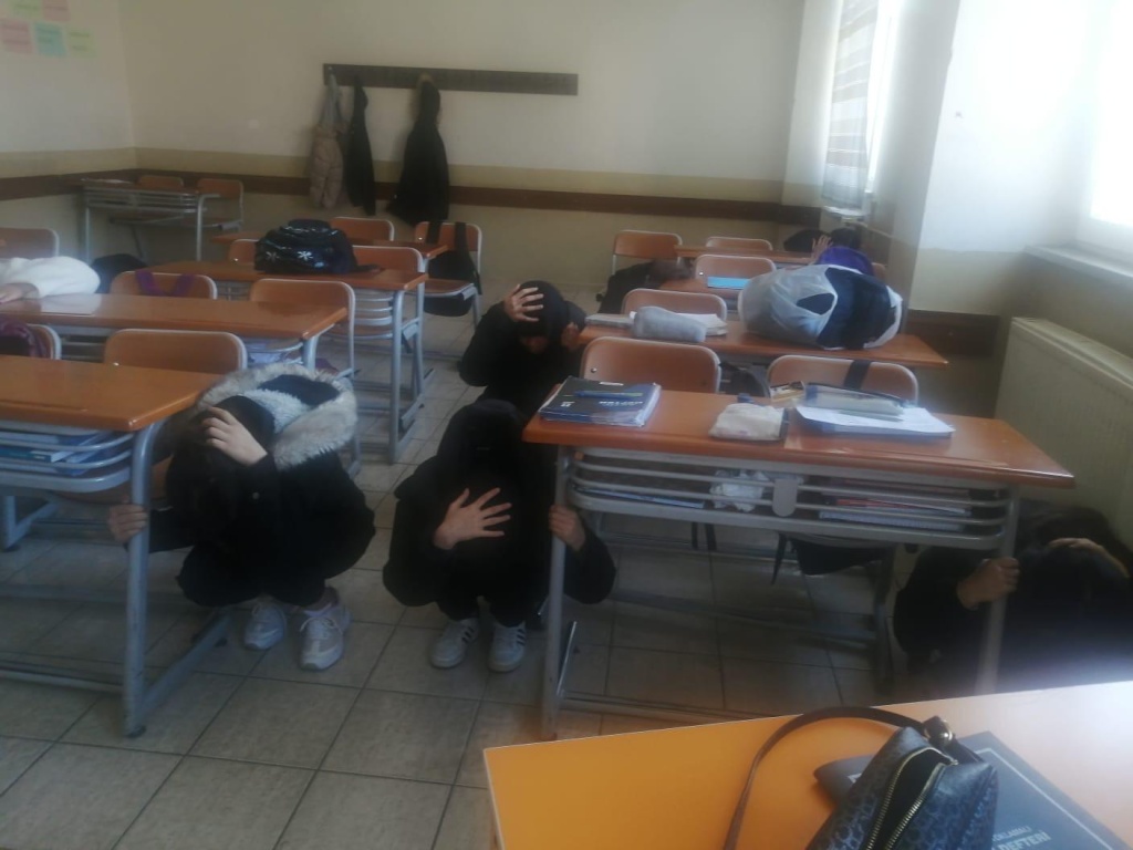 Okulumuzda öğrencilerimize deprem anında nasıl hareket etmeleri konusunda öğretmenlerimiz gerekli bilgilendirmeleri yaptıktan sonra uygulamalı olarak deprem tatbikatı yapıldı.