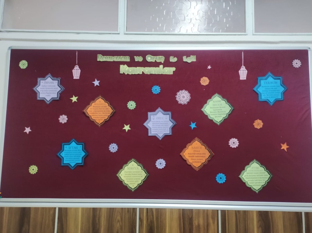Okulumuzda Ramazan-ı Şerif ayı büyük bir heyecan ve coşkuyla karşılandı. Öğrenciler, öğretmenler ve idareciler, bu mübarek ayın manevi sıcaklığını birlikte yaşamak için çeşitli etkinlikler düzenledi. Okulumuzda Ramazan sokağı oluşturuldu. Koridorlar süslendi. Yardımlaşma ve dayanışma ayı olduğunu hissetmek adına yardım kampanyalarına katkı sağlandı. Topluluk içinde birlik ve dayanışma duygularını pekiştirmeye yönelik etkinlikler yapıldı.